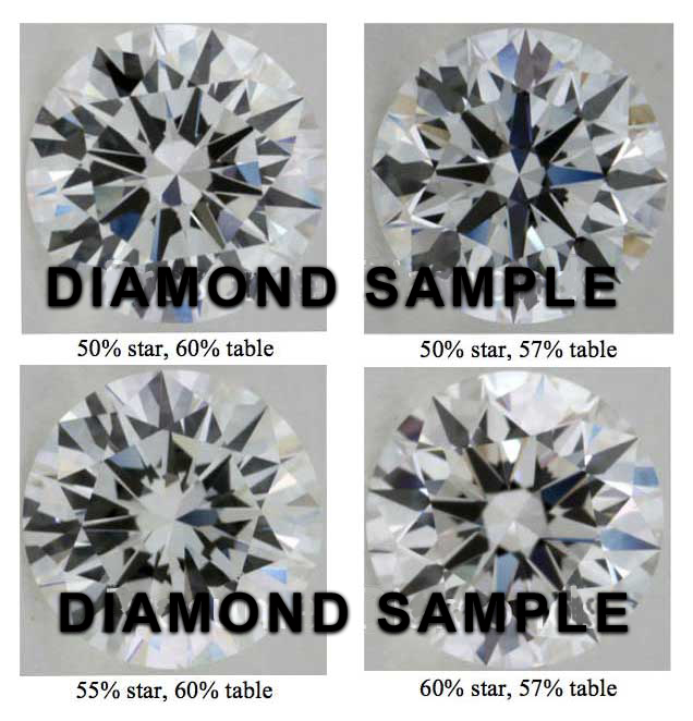 As a rule of thumb, for every 5% increase in star length, you can add 1% to the estimated table size. That means the table shape of the diamond with 60% star, 57% table should look very similar to a diamond with 50% star, 55% table.